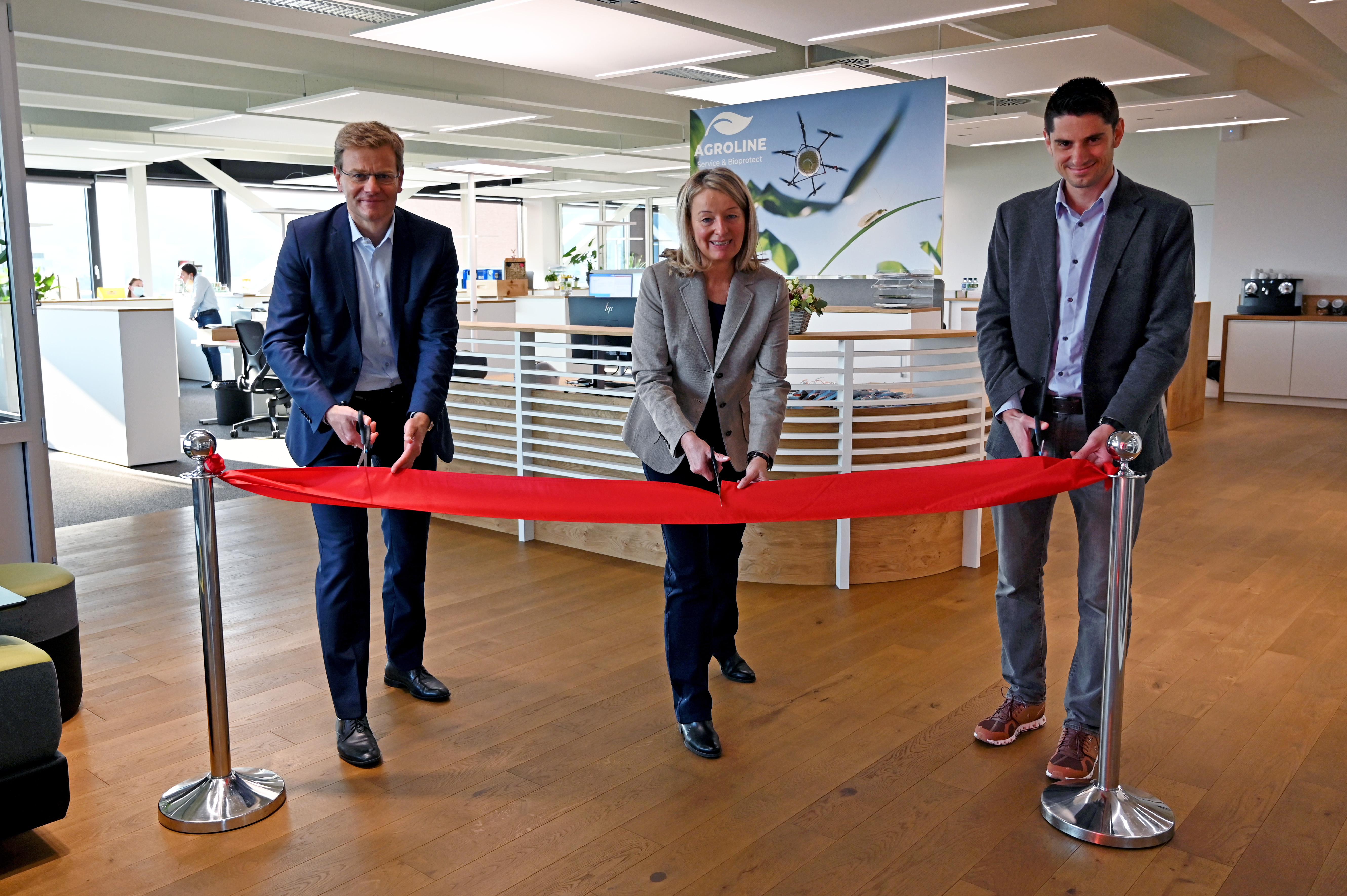 «Die Nachfrage nach alternativen Pflanzenschutzmethoden steigt jährlich um rund 15 Prozent», sagt Regina Burger, Leiterin von AGROLINE Bioprotect, und fährt fort: «Um dieser Entwicklung gerecht zu werden, haben wir die Kapazitäten am bestehenden Standort von AGROLINE in Aesch bei Basel massiv ausgebaut.» Das neue, rund 1700 m2 grosse Zentrum für nachhaltigen Pflanzenschutz AGROLINE Bioprotect wurde am 22. April 2021 offiziell eröffnet. Es umfasst Labors für Mikro- und Makroorganismen, eine Nützlingszucht sowie einen Logistikbereich für den Versand der Nützlinge an mehrere tausend Kundinnen und Kunden in der Schweiz, Deutschland und Österreich. Die Produktionskapazitäten für die Schlupfwespen wurden verdreifacht. AGROLINE Bioprotect kann nun pro Jahr mehrere Millionen Optikugeln herstellen, mit denen die Schlupfwespeneier abgeworfen werden. Bis zu rund 30 Spezialistinnen und Spezialisten arbeiten in Aesch an Themen wie Wildbienen-Bestäubung, digitalem Monitoring im Vorratsschutz, Gemüse-,Obst- und Feldbau, Nützlingsausbringung durch Drohnen oder Unkrauterkennung mittels künstlicher Intelligenz. «Mit dieser Investition unterstreichen wir unsere Ambition, in der Entwicklung und beim Einsatz von nachhaltigen Pflanzenschutzlösungen eine zentrale Rolle zu spielen», sagt Michael Feitknecht, Leiter von AGROLINE und Mitglied der Geschäftsleitung der fenaco.