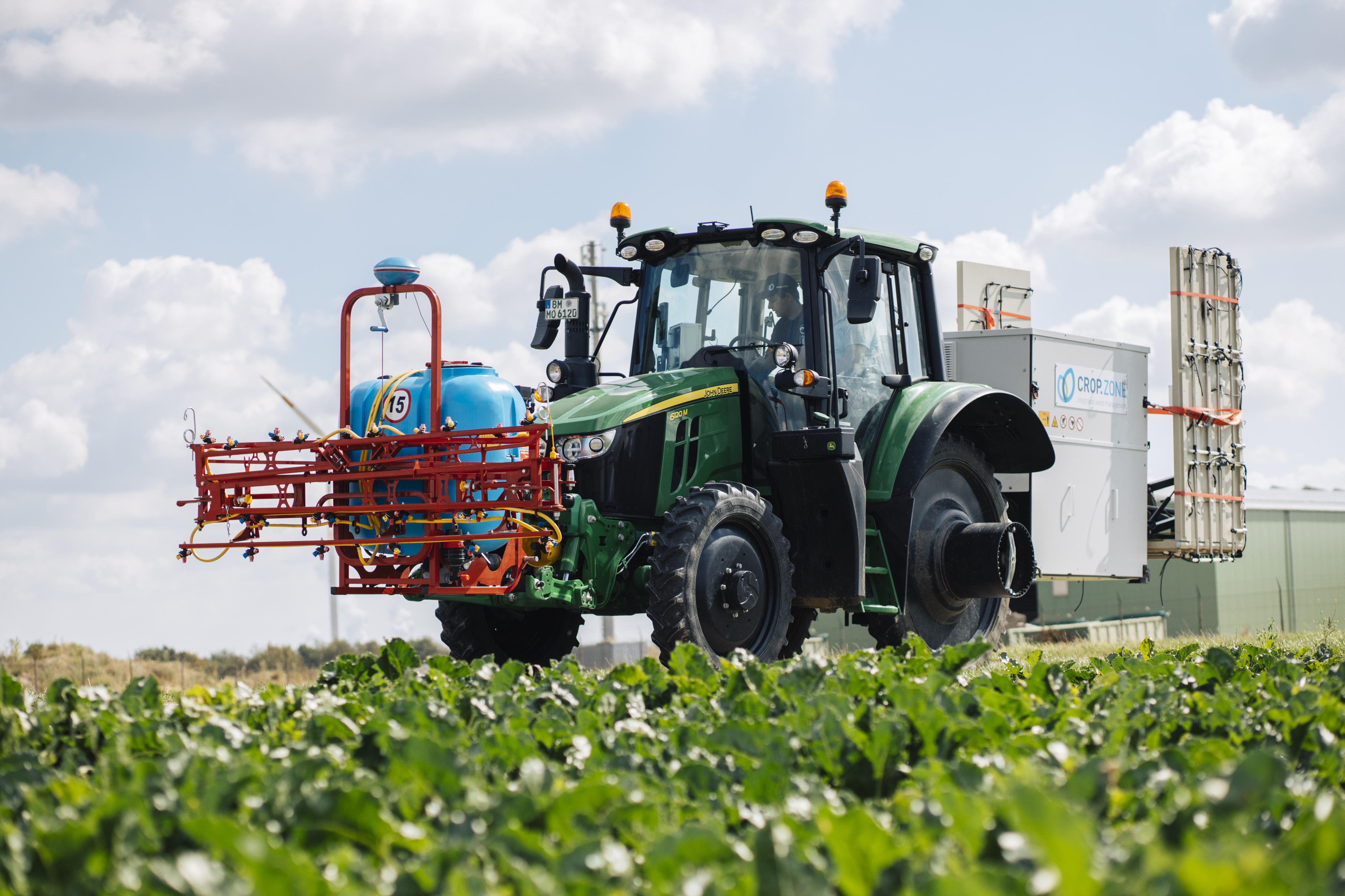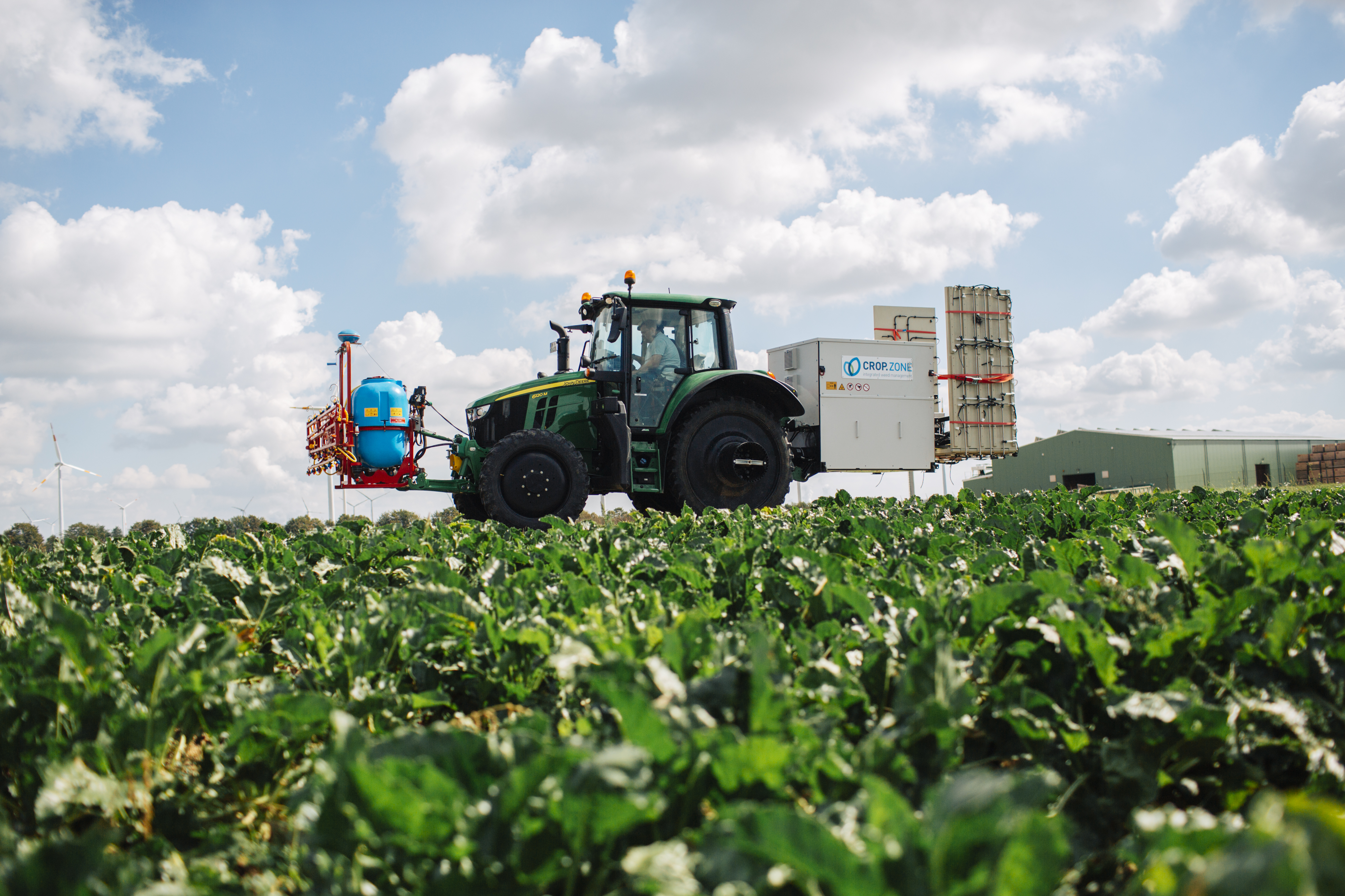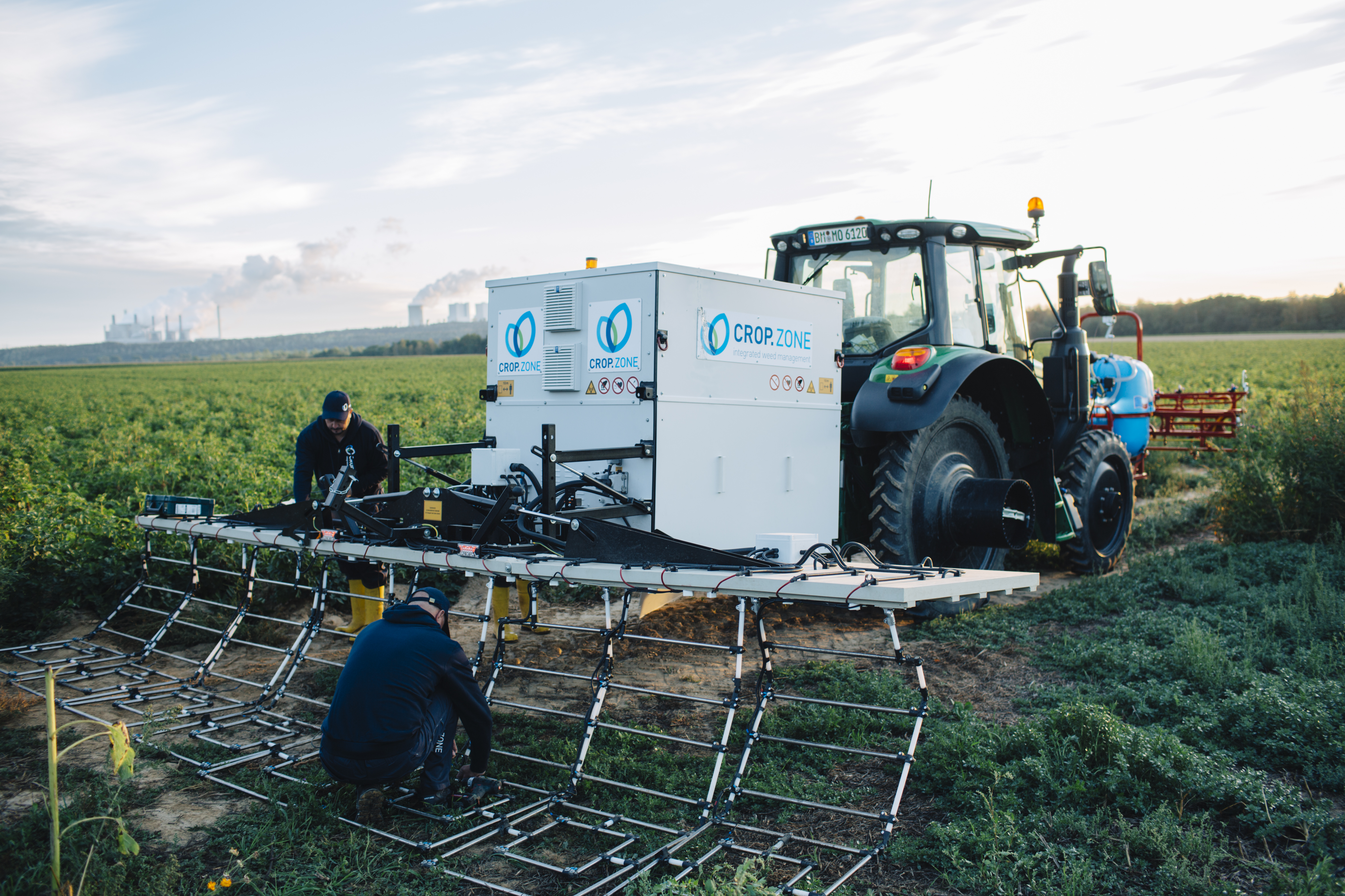 Die Technologie von crop.zone bekämpft Unkraut mit einer elektrischen Ladung und schafft damit eine innovative und nachhaltige Methode zur Unkrautbekämpfung. Die Anwendungsbreite beträgt bis zu zwölf Meter. Mit einer Ausbringungsgeschwindigkeit von 4 km pro Stunde kann die crop.zone Lösung rund 3 Hektare pro Stunde behandeln. Die Pflanzen werden dabei in einem ersten Schritt mit einer leitfähigen Flüssigkeit vorbehandelt. Danach wird das Unkraut gezielt durch eine elektrische Ladung bekämpft. Der Energieverbrauch ist so geringer und das Vorgehen hat gegenüber anderen elektrischen Technologien einen deutlich höheren Wirkungsgrad. Das Forschungsinstitut für biologischen Landbau (FiBL) klärt derzeit ab, ob das Verfahren für den biologischen Landbau zugelassen werden kann.